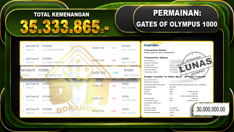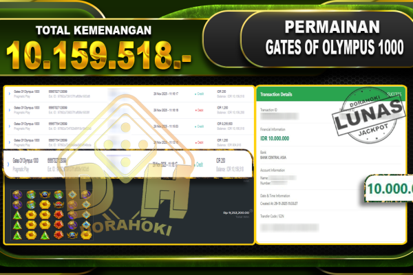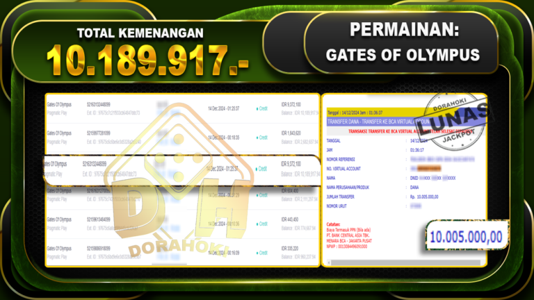 Bukti JP Gates Of Olympus 1000 – ucapkan selamat kepada user id dinxxxx atas kemenangan di Gates Of Olympus 1000 dengan total kemenangan Rp.10.159.518,- Yang pasti nya langsung LUNAS sesuai bukti ya bosku. Dorahoki nih bosku berapapun akan tetap kami bayar lunas ya bosku