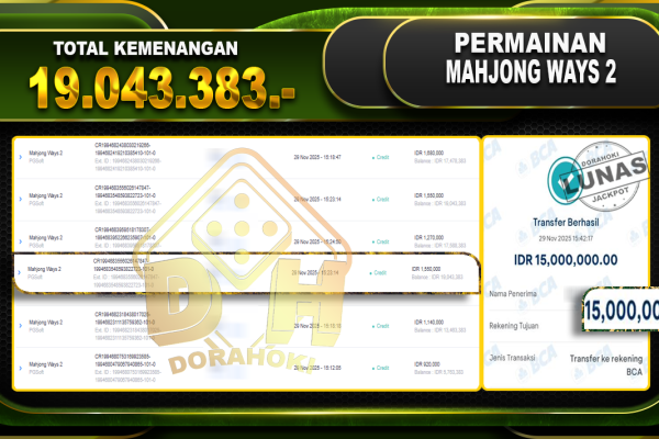 Bukti JP Mahjong Ways 2 – ucapkan selamat kepada user id bayxxx atas kemenangan di Mahjong Ways 2 dengan total kemenangan Rp.19.043.383,- Yang pasti nya langsung LUNAS sesuai bukti ya bosku. Dorahoki nih bosku berapapun akan tetap kami bayar lunas ya bosku