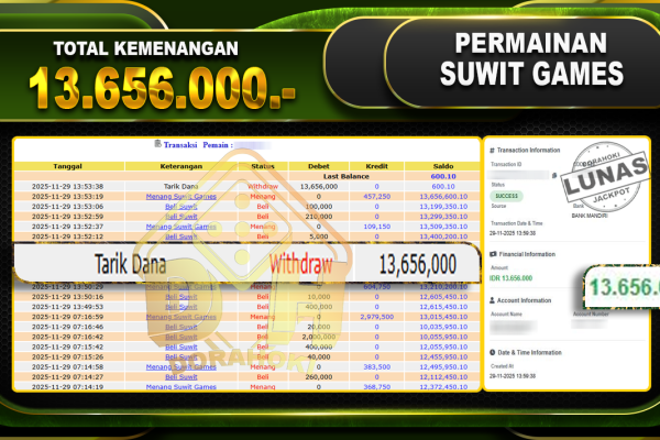 Bukti JP Suwit Games – ucapkan selamat kepada user id gooxxx atas kemenangan di Suwit Games dengan total kemenangan Rp.13,656,000 ,- . Yang pasti nya langsung LUNAS sesuai bukti ya bosku. Dofrahoki nih bosku berapapun akan tetap kami bayar lunas ya bosku. Kami mengucapkan Terima Kasih telah mempercayakan DORAHOKI sebagai Bandar Online pilihan dalam bermain…