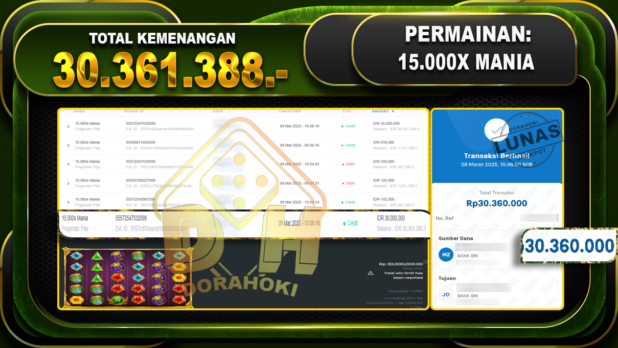 Bukti JP 15.000x Mania – ucapkan selamat kepada user id Bintxxx atas kemenangan di 15.000x Mania dengan total kemenangan Rp.30.361.388,- . Yang pasti nya langsung LUNAS sesuai bukti ya bosku. Dorahoki nih bosku berapapun akan tetap kami bayar lunas ya bosku.