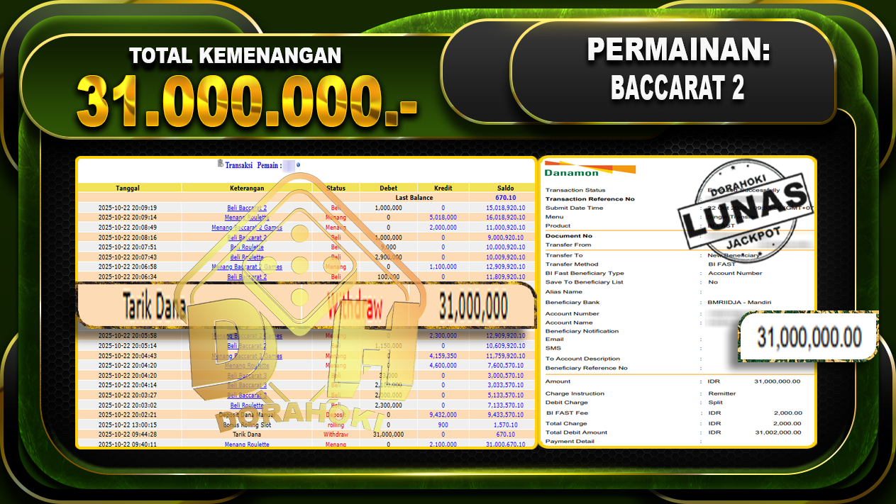 BACCARAT 2 – DORAHOKI 22 OKTOBER 2025
