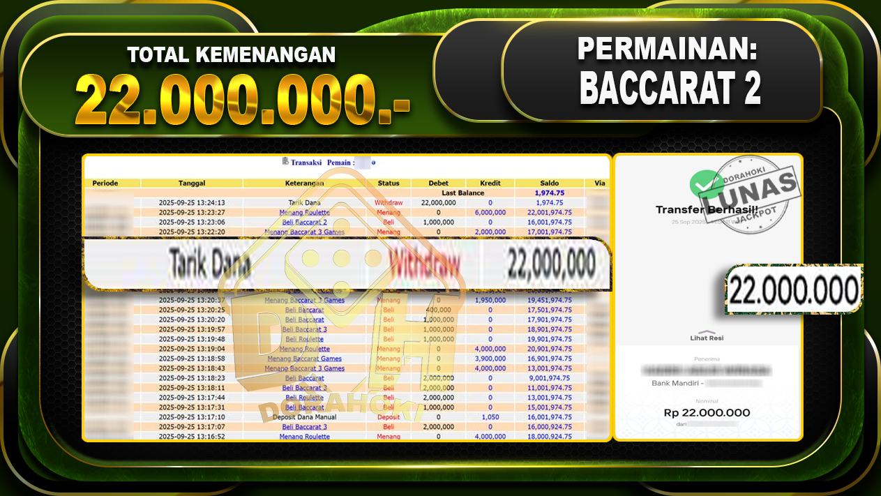 Bukti JP BACCARAT 2 GAMES- ucapkan selamat kepada user id jixxx atas kemenangan di BACCARAT 2 GAMES dengan total kemenangan Rp.22.000.000,- . Yang pasti nya langsung LUNAS sesuai bukti ya bosku. Dorahoki nih bosku berapapun akan tetap kami bayar lunas ya bosku.