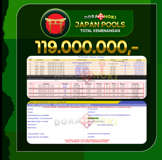 Kami ucapkan selamat kepada user id: aku84 atas kemenangan di JAPAN POOLS dengan total kemenangan Rp.119,000,000,- pasti nya langsung LUNAS sesuai bukti ya bosku. Dorahoki nih bosku berapapun akan tetap kami bayar lunas ya bosku^^.