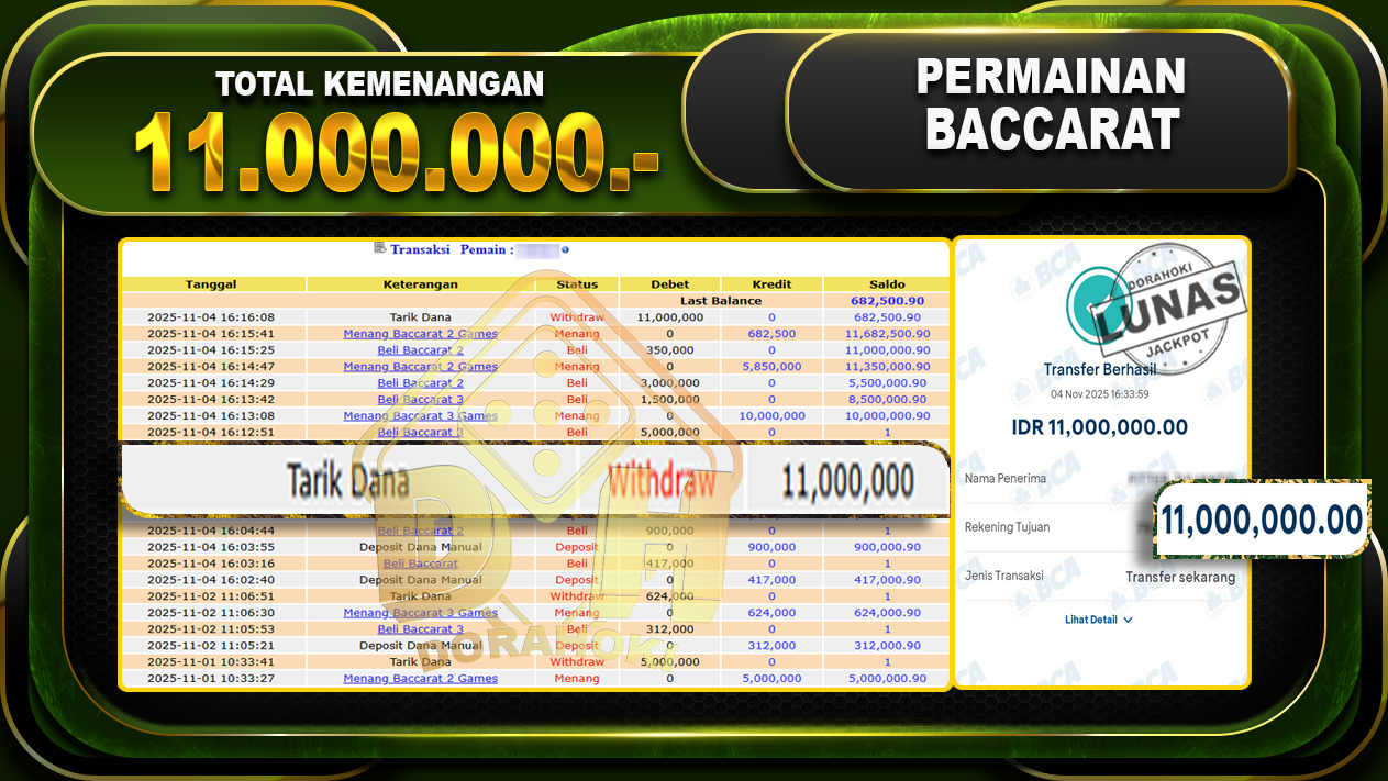 Bukti JP Sibco Dice – Kami ucapkan selamat kepada user id Darknxxx atas kemenangan di Sicbo Dice dengan total kemenangan Rp.53,445,000,- . Yang pasti nya langsung LUNAS sesuai bukti ya bosku. Dorahoki nih bosku berapapun akan tetap kami bayar lunas ya bosku.