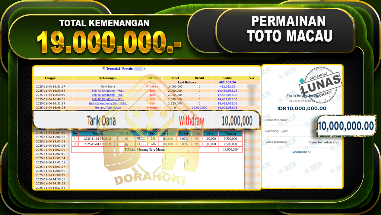 Dalam memilih BO favorit hal terpenting yang harus di perhatikan adalah besaran hadiah yang ditawarkan. Berikut hadiah yang kami tawarkan di DORAHOKI:
