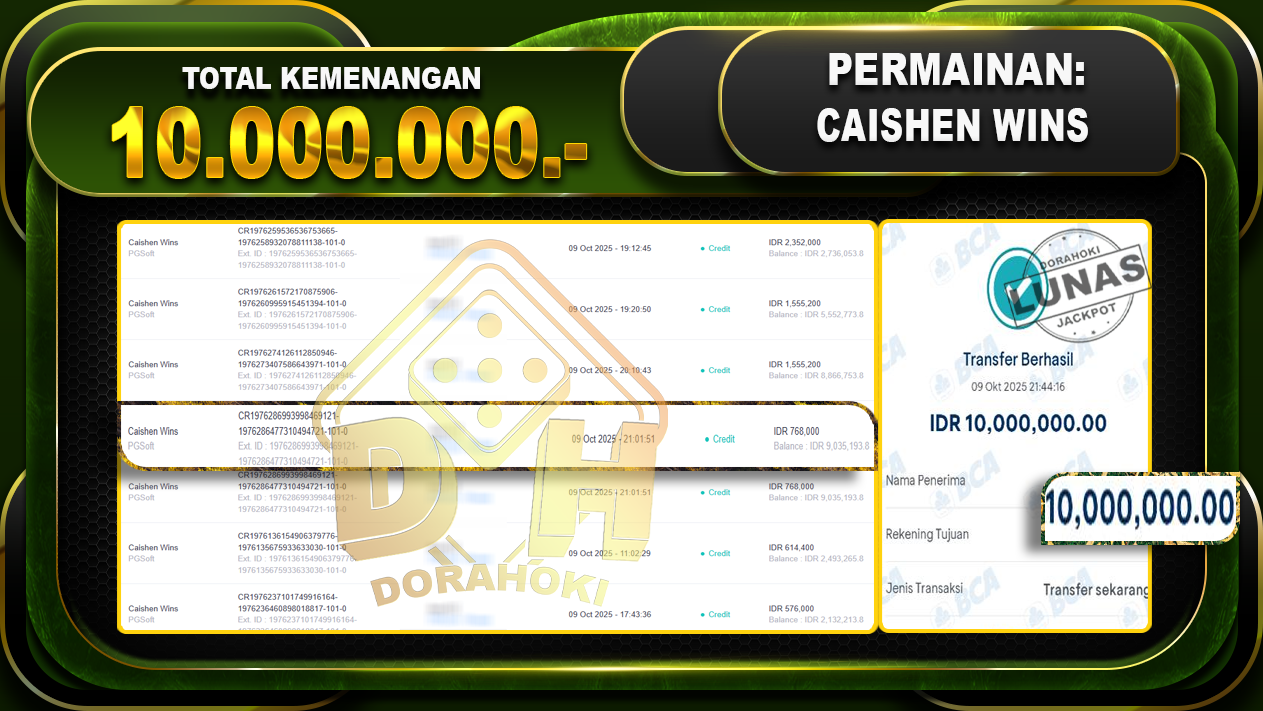 CAISHEN WINS – DORAHOKI 09 OKTOBER 2025