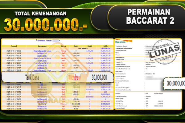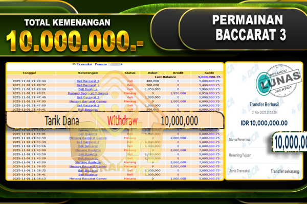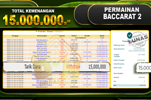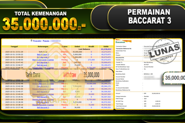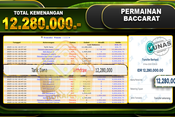 Bukti JP BACCARAT – ucapkan selamat kepada user id capxxxx atas kemenangan di BACCARAT dengan total kemenangan Rp.28.090.000,- . Yang pasti nya langsung LUNAS sesuai bukti ya bosku. Dorahoki nih bosku berapapun akan tetap kami bayar lunas ya bosku.