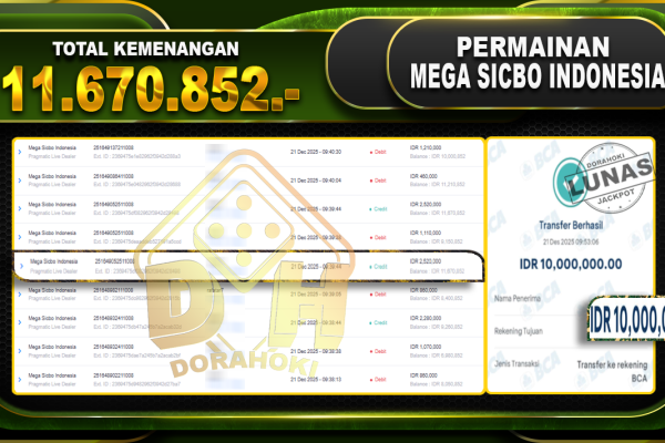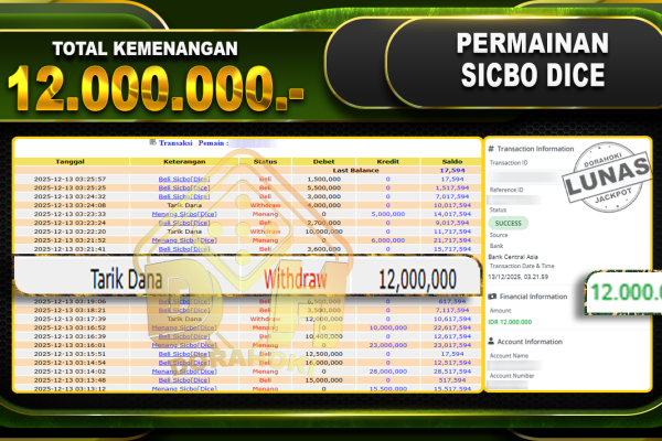 Bukti JP Sicbo Dice – ucapkan selamat kepada user id antxxx atas kemenangan di Sicbo Dice dengan total kemenangan Rp.15,000,000,- Yang pasti nya langsung LUNAS sesuai bukti ya bosku. Dorahoki nih bosku berapapun akan tetap kami bayar lunas ya bosku.