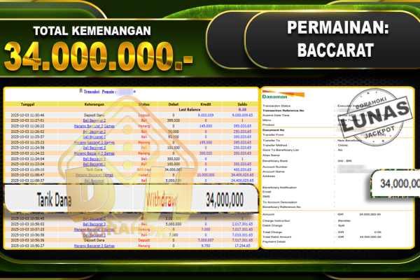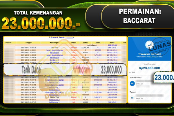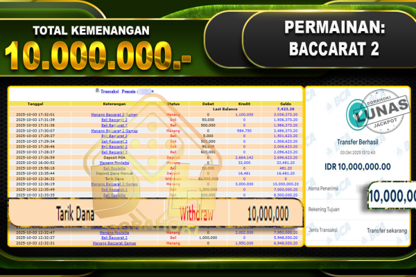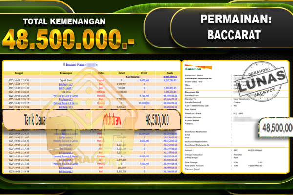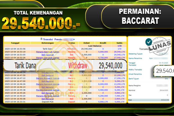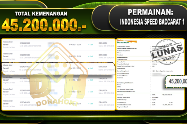 Bukti JP Indonesia Speed Baccarat 1 – ucapkan selamat kepada user id prakxxxxx atas kemenangan di Indonesia Speed Baccarat 1 dengan total kemenangan Rp.45.200.000,- Yang pasti nya langsung LUNAS sesuai bukti ya bosku. Dorahoki nih bosku berapapun akan tetap kami bayar lunas ya bosku