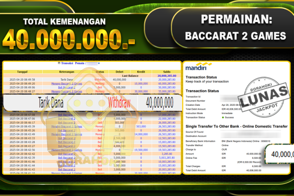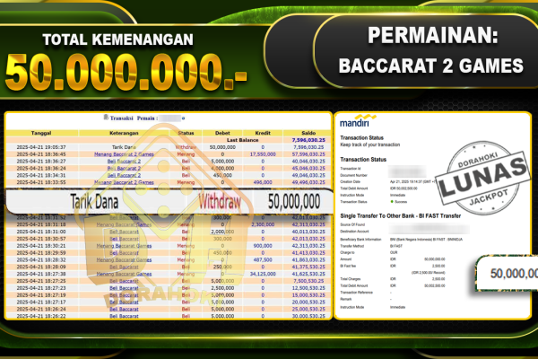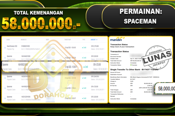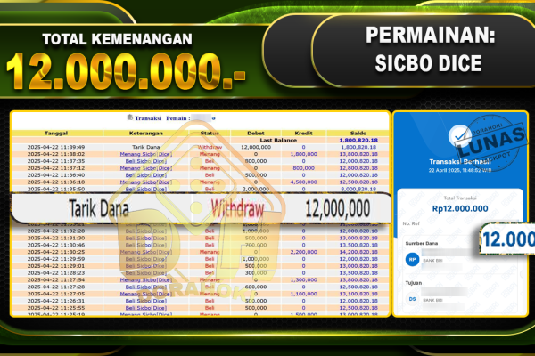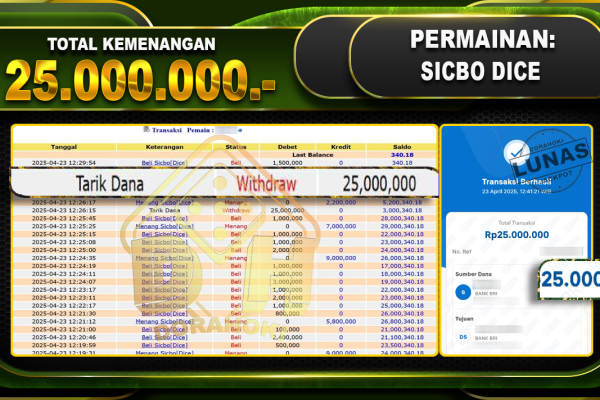 Bukti JP SICBO DICE – ucapkan selamat kepada user id Dinxxx atas kemenangan di SICBO DICE dengan total kemenangan Rp.25.000.000,- . Yang pasti nya langsung LUNAS sesuai bukti ya bosku. Dorahoki nih bosku berapapun akan tetap kami bayar lunas ya bosku. Kami mengucapkan Terima Kasih telah mempercayakan DORAHOKI sebagai Bandar Online pilihan dalam bermain judi online….