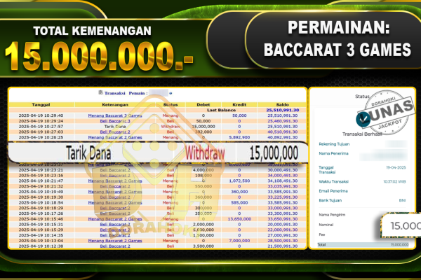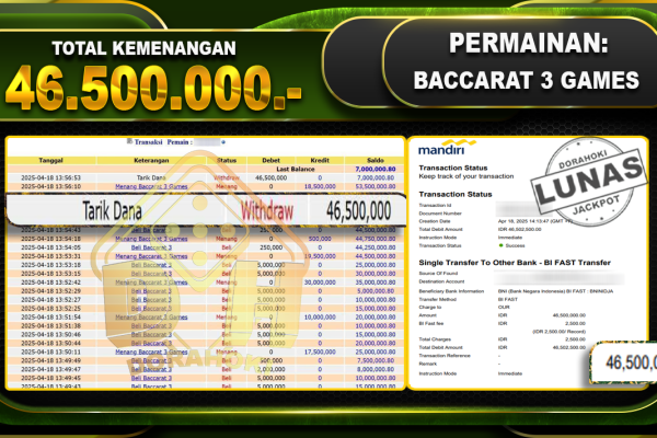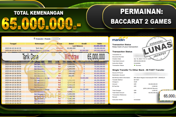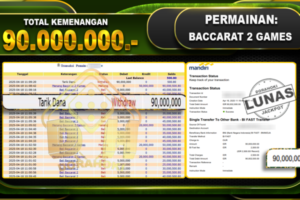Bukti JP BACCARAT 2 GAMES – ucapkan selamat kepada user id Wahxxx atas kemenangan di BACCARAT 2 GAMES dengan total kemenangan Rp.36.000.000,- . Yang pasti nya langsung LUNAS sesuai bukti ya bosku. Dorahoki nih bosku berapapun akan tetap kami bayar lunas ya bosku. Kami mengucapkan Terima Kasih telah mempercayakan DORAHOKI sebagai Bandar Online pilihan dalam bermain…