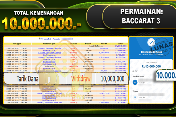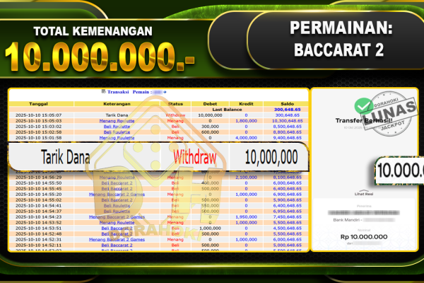 Bukti JP Roulette – ucapkan selamat kepada user id bandxxxxx atas kemenangan di Roulette dengan total kemenangan Rp.12.000.000,- Yang pasti nya langsung LUNAS sesuai bukti ya bosku. Dorahoki nih bosku berapapun akan tetap kami bayar lunas ya bosku.