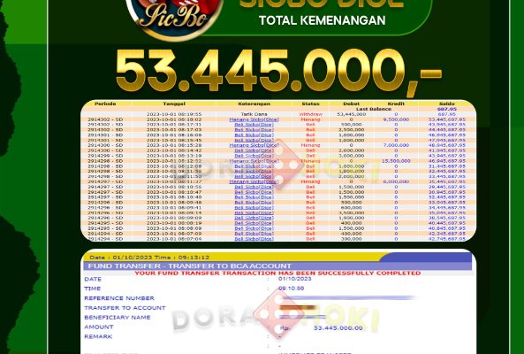 Bukti JP Livecasino Roulette – Kami ucapkan selamat kepada user id mpugandxxx atas kemenangan di Roulette dengan total kemenangan Rp.20,700,000,- . Yang pasti nya langsung LUNAS sesuai bukti ya bosku. Dorahoki nih bosku berapapun akan tetap kami bayar lunas ya bosku. Kami mengucapkan Terima Kasih telah mempercayakan DORAHOKI sebagai Bandar Online pilihan dalam bermain judi online….