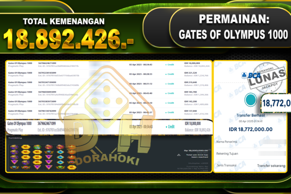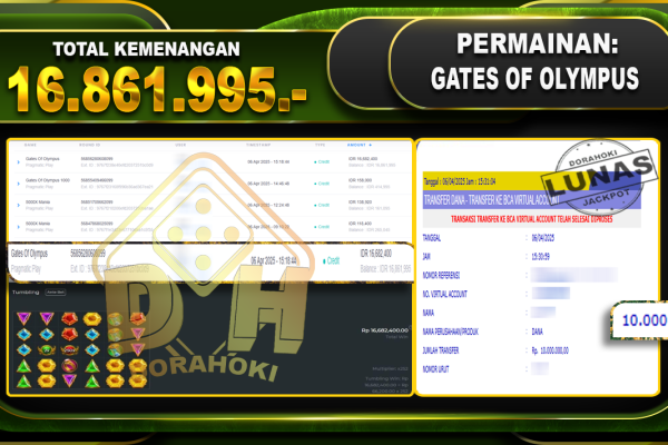 Bukti JP GATES OF OLYMPUS – ucapkan selamat kepada user id Robxxx atas kemenangan di GATES OF OLYMPUS 1000 dengan total kemenangan Rp.16.861.995,- . Yang pasti nya langsung LUNAS sesuai bukti ya bosku. Dorahoki nih bosku berapapun akan tetap kami bayar lunas ya bosku. Kami mengucapkan Terima Kasih telah mempercayakan DORAHOKI sebagai Bandar Online pilihan dalam…