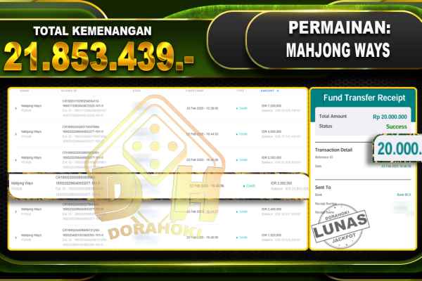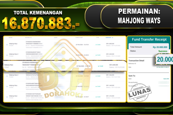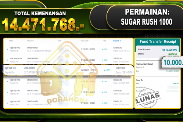 Bukti JP GATES OF OLYMPUS 1000 – ucapkan selamat kepada user id ragxxx atas kemenangan di GATES OF OLYMPUS 1000 dengan total kemenangan Rp.19.890.172,- . Yang pasti nya langsung LUNAS sesuai bukti ya bosku. Dorahoki nih bosku berapapun akan tetap kami bayar lunas ya bosku. Kami mengucapkan Terima Kasih telah mempercayakan DORAHOKI sebagai Bandar Online pilihan…
