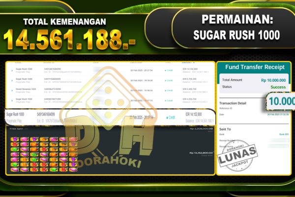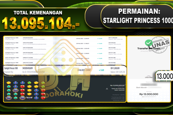 Bukti JP STARLIGHT PRINCESS 1000 – ucapkan selamat kepada user id SYAKIRxxx atas kemenangan di STARLIGHT PRINCESS 1000 dengan total kemenangan Rp.13,095.104,- . Yang pasti nya langsung LUNAS sesuai bukti ya bosku. Dorahoki nih bosku berapapun akan tetap kami bayar lunas ya bosku. Kami mengucapkan Terima Kasih telah mempercayakan DORAHOKI sebagai Bandar Online pilihan dalam bermain…