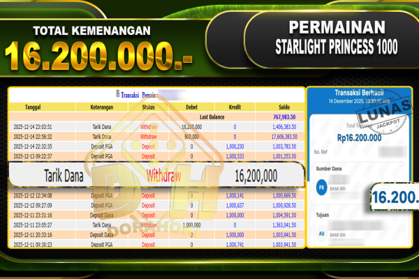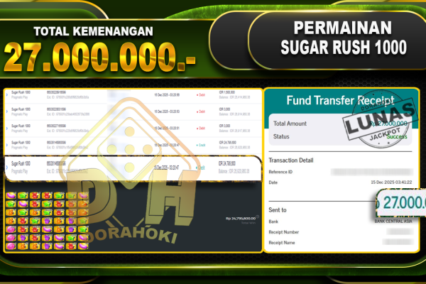 Bukti JP Sugar Rush 1000 – ucapkan selamat kepada user id bawxx atas kemenangan di Sugar Rush 1000 dengan total kemenangan Rp.27,000,000,- Yang pasti nya langsung LUNAS sesuai bukti ya bosku. Dorahoki nih bosku berapapun akan tetap kami bayar lunas ya bosku