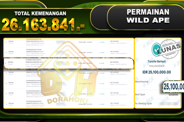 Bukti JP Wild Ape  – ucapkan selamat kepada user id k0mxxxxx atas kemenangan di Wild Ape dengan total kemenangan Rp.26.163.841.-. Yang pasti nya langsung LUNAS sesuai bukti ya bosku. Dorahoki nih bosku berapapun akan tetap kami bayar lunas ya bosku.