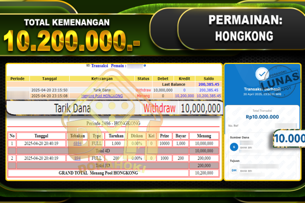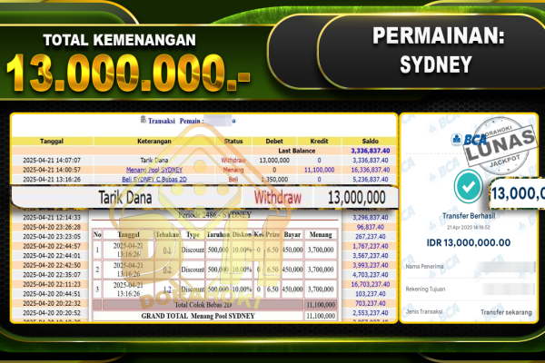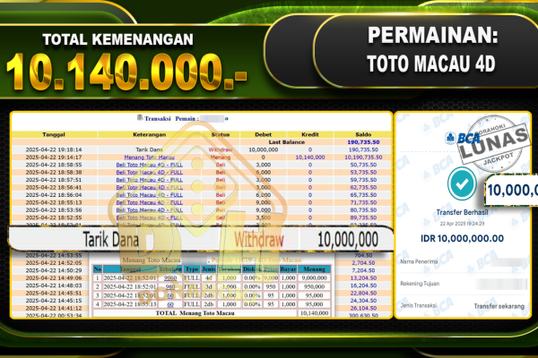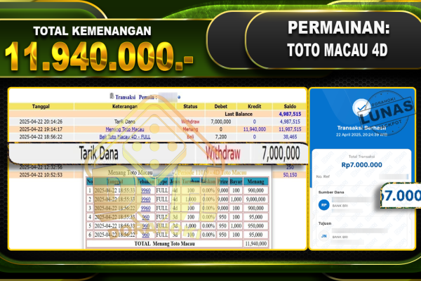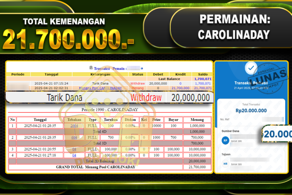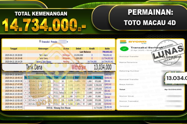 Bukti JP TOGEL TOTOMACAU 4D – ucapkan selamat kepada user id Golxxx atas kemenangan di TOGEL TOTOMACAU 4D dengan total kemenangan Rp.11.940.000,- . Yang pasti nya langsung LUNAS sesuai bukti ya bosku. Dorahoki nih bosku berapapun akan tetap kami bayar lunas ya bosku. Kami mengucapkan Terima Kasih telah mempercayakan DORAHOKI sebagai Bandar Online pilihan dalam…