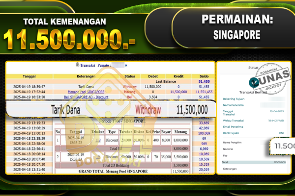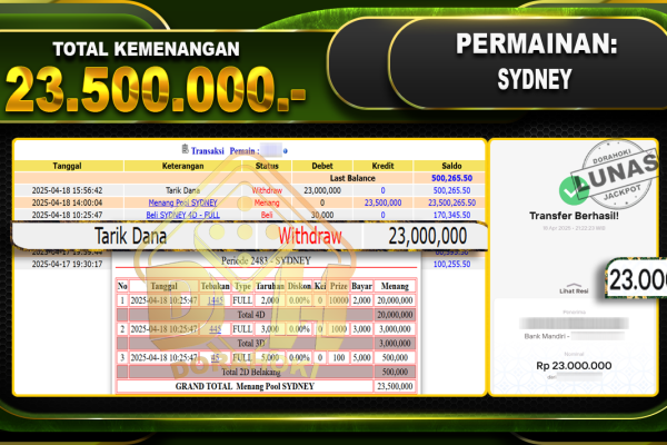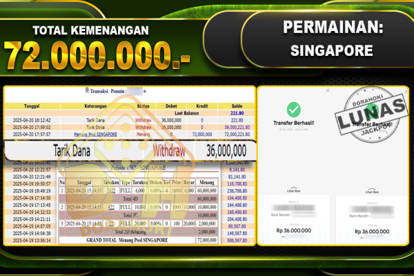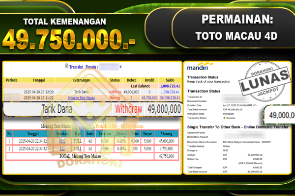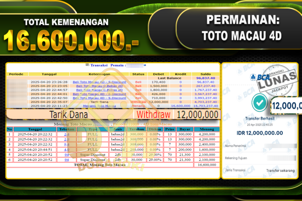 Bukti JP TOGEL TOTO MACAU 4D – ucapkan selamat kepada user id Hafxxx atas kemenangan di TOGEL TOTO MACAU 4D dengan total kemenangan Rp.16.600.000 .,- . Yang pasti nya langsung LUNAS sesuai bukti ya bosku. Dorahoki nih bosku berapapun akan tetap kami bayar lunas ya bosku. Kami mengucapkan Terima Kasih telah mempercayakan DORAHOKI sebagai Bandar…