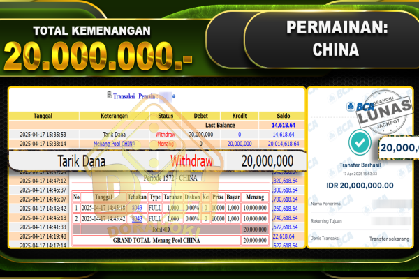 Bukti JP TOGEL TAIWAN- ucapkan selamat kepada user id Jitxxx atas kemenangan di TOGEL TAIWAN dengan total kemenangan Rp.160.000.000,- . Yang pasti nya langsung LUNAS sesuai bukti ya bosku. Dorahoki nih bosku berapapun akan tetap kami bayar lunas ya bosku. Kami mengucapkan Terima Kasih telah mempercayakan DORAHOKI sebagai Bandar Online pilihan dalam bermain judi online. Semoga…