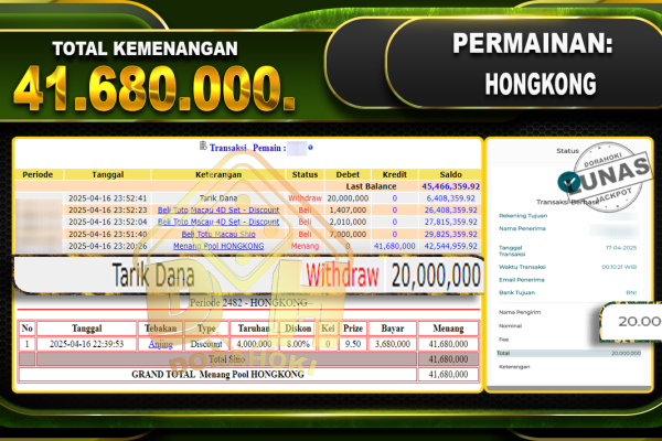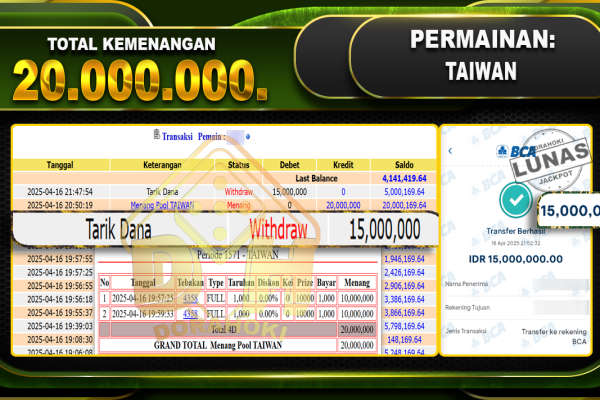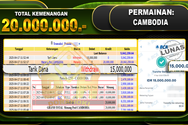 Bukti JP TOGEL CAMBODIA – ucapkan selamat kepada user id Gapxxx atas kemenangan di TOGEL CAMBODIA dengan total kemenangan Rp 20.000.000.,- . Yang pasti nya langsung LUNAS sesuai bukti ya bosku. Dorahoki nih bosku berapapun akan tetap kami bayar lunas ya bosku. Kami mengucapkan Terima Kasih telah mempercayakan DORAHOKI sebagai Bandar Online pilihan dalam bermain judi…