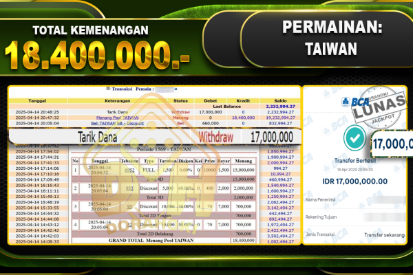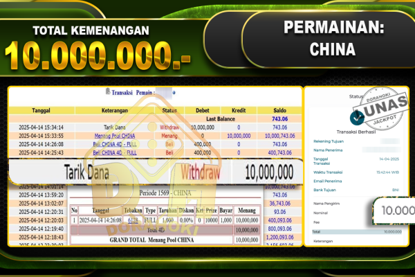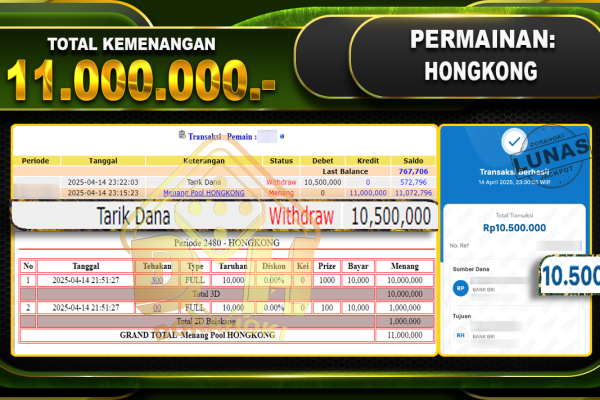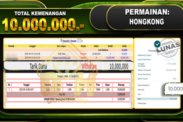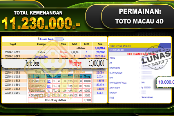 Bukti JP TOGEL TOTOMACAU 4D – ucapkan selamat kepada user id Kamxxx atas kemenangan di TOGEL TOTOMACAU 4D dengan total kemenangan Rp.11.230.000,- . Yang pasti nya langsung LUNAS sesuai bukti ya bosku. Dorahoki nih bosku berapapun akan tetap kami bayar lunas ya bosku. Kami mengucapkan Terima Kasih telah mempercayakan DORAHOKI sebagai Bandar Online pilihan dalam…