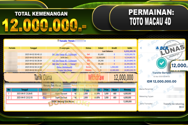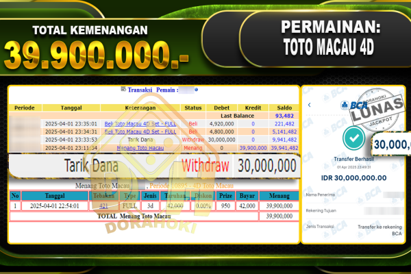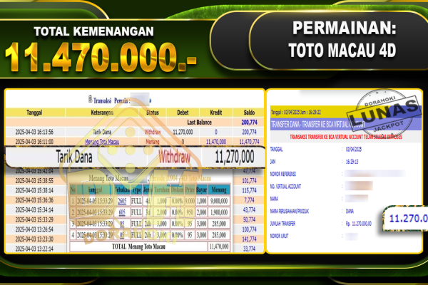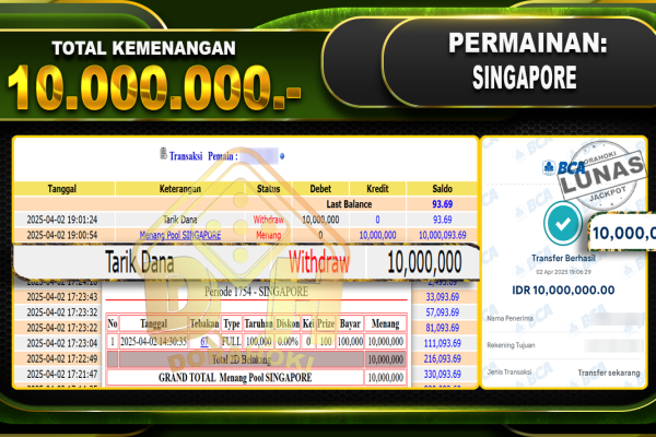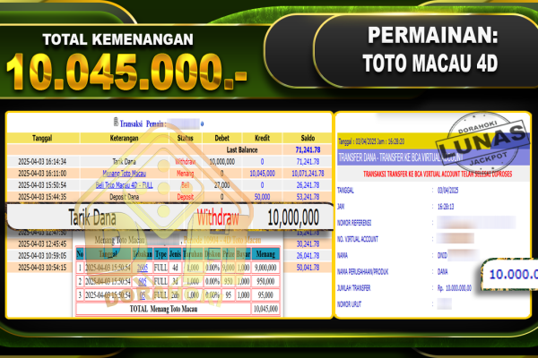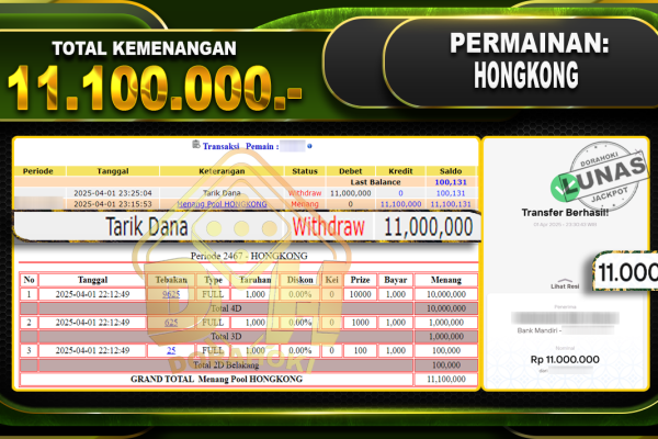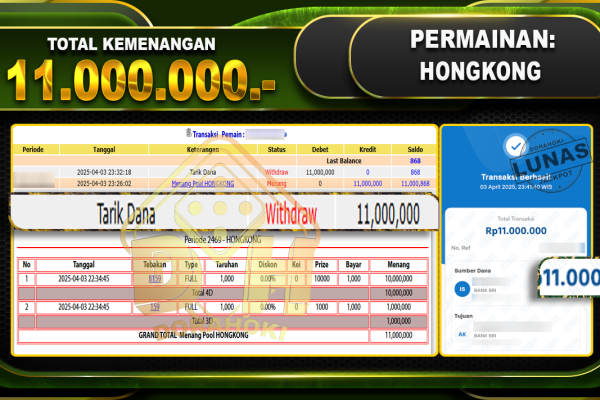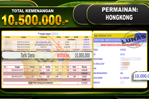 Bukti JP TOGEL HONGKONG – ucapkan selamat kepada user id Risxxx atas kemenangan di TOGEL HONGKONG dengan total kemenangan Rp10.500.000,- . Yang pasti nya langsung LUNAS sesuai bukti ya bosku. Dorahoki nih bosku berapapun akan tetap kami bayar lunas ya bosku. Kami mengucapkan Terima Kasih telah mempercayakan DORAHOKI sebagai Bandar Online pilihan dalam bermain judi…