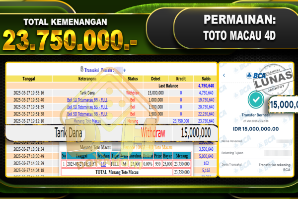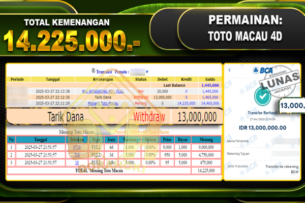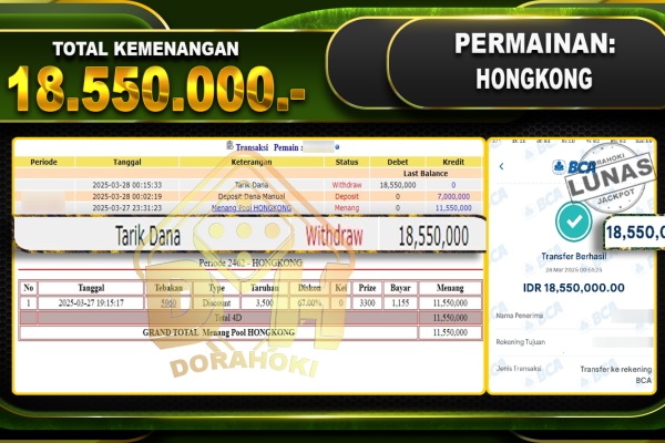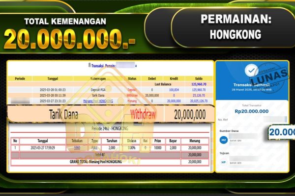 Bukti JP TOGEL HONGKONG – ucapkan selamat kepada user id Henxxx atas kemenangan di TOGEL HONGKONG dengan total kemenangan Rp20.000.000,- . Yang pasti nya langsung LUNAS sesuai bukti ya bosku. Dorahoki nih bosku berapapun akan tetap kami bayar lunas ya bosku. Kami mengucapkan Terima Kasih telah mempercayakan DORAHOKI sebagai Bandar Online pilihan dalam bermain judi…