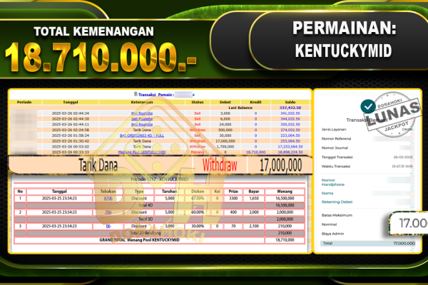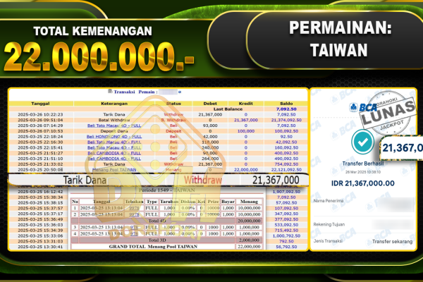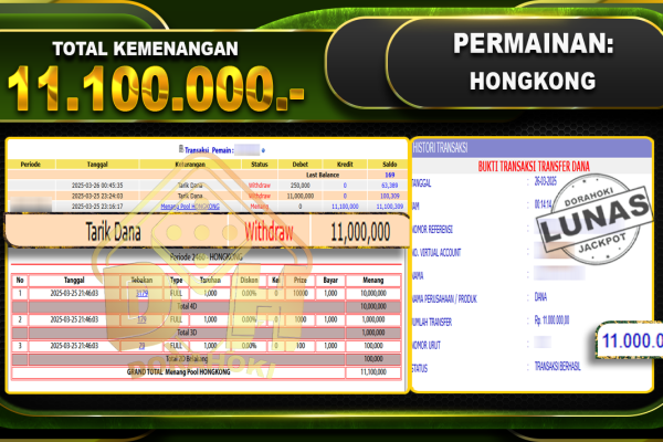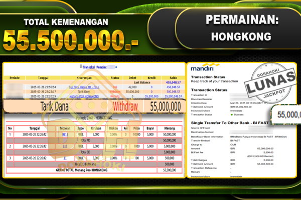 Bukti JP TOGEL OREGON03 – ucapkan selamat kepada user id Nurxxx atas kemenangan di TOGEL OREGON03 dengan total kemenangan Rp.20.050.000,- . Yang pasti nya langsung LUNAS sesuai bukti ya bosku. Dorahoki nih bosku berapapun akan tetap kami bayar lunas ya bosku. Kami mengucapkan Terima Kasih telah mempercayakan DORAHOKI sebagai Bandar Online pilihan dalam bermain judi…