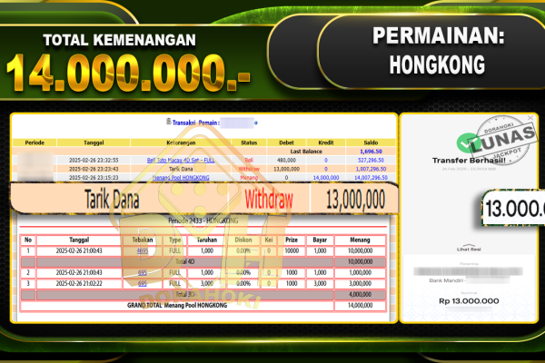 Bukti JP TOGEL TAIWAN- ucapkan selamat kepada user id Vitxxx atas kemenangan di TOGEL TAIWAN dengan total kemenangan Rp.10.000.000,- . Yang pasti nya langsung LUNAS sesuai bukti ya bosku. Dorahoki nih bosku berapapun akan tetap kami bayar lunas ya bosku. Kami mengucapkan Terima Kasih telah mempercayakan DORAHOKI sebagai Bandar Online pilihan dalam bermain judi online. Semoga…