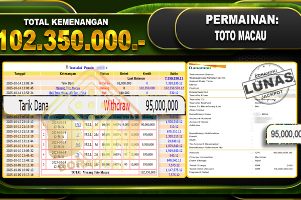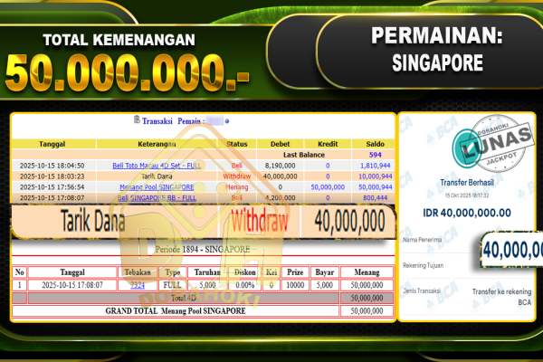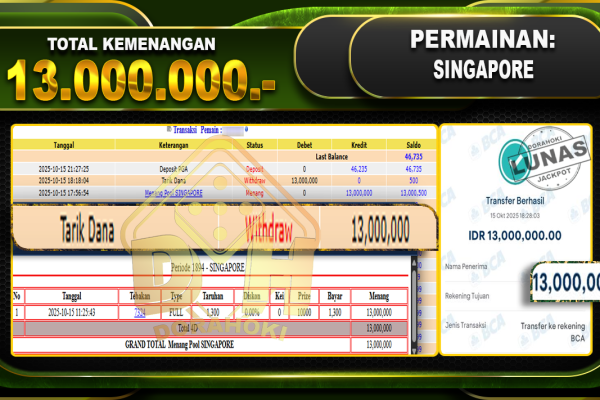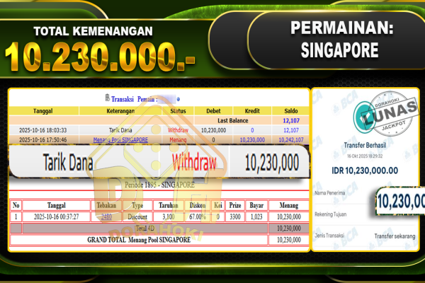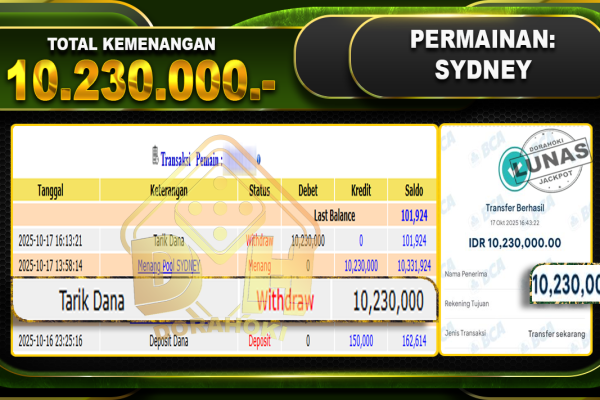 Bukti JP TOGEL SYDNEY – ucapkan selamat kepada user id bluxxxxx atas kemenangan di TOGEL SYDNEY dengan total kemenangan Rp.10,230,000,- Yang pasti nya langsung LUNAS sesuai bukti ya bosku. Dorahoki nih bosku berapapun akan tetap kami bayar lunas ya bosku