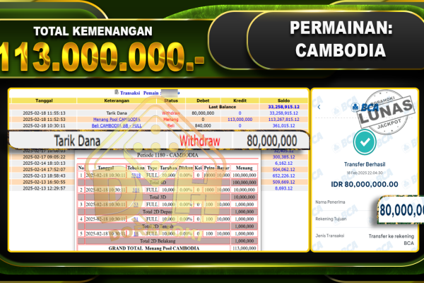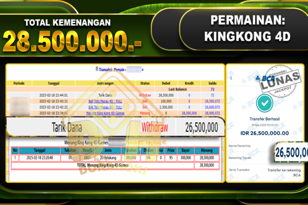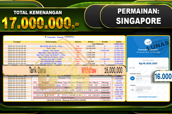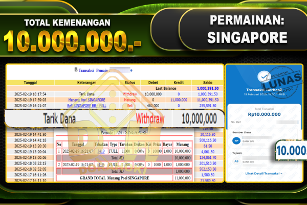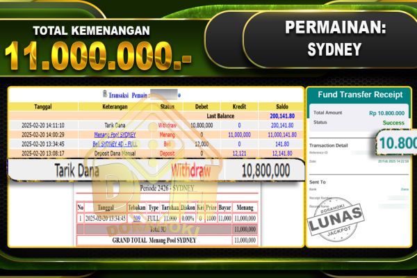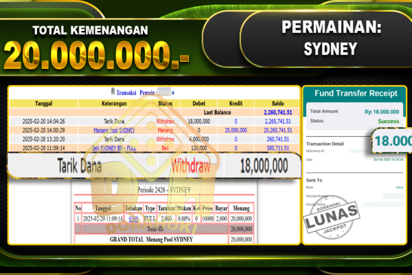 Bukti JP TOGEL SYDNEY – ucapkan selamat kepada user id sibxxx atas kemenangan di TOGEL SYDNEY dengan total kemenangan Rp.20.000.000,- . Yang pasti nya langsung LUNAS sesuai bukti ya bosku. Dorahoki nih bosku berapapun akan tetap kami bayar lunas ya bosku. Kami mengucapkan Terima Kasih telah mempercayakan DORAHOKI sebagai Bandar Online pilihan dalam bermain judi…