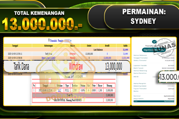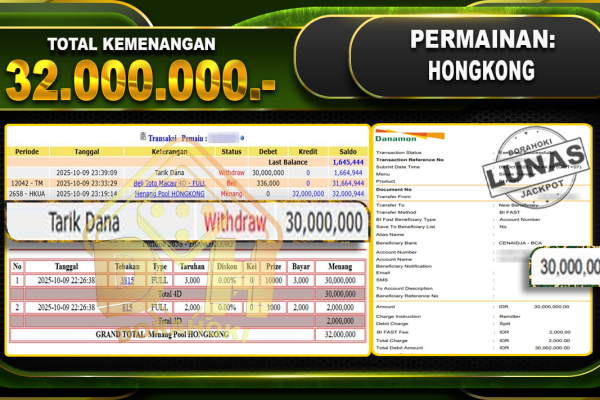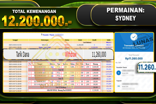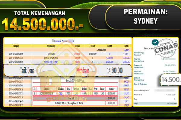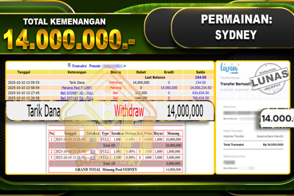 Bukti JP TOGEL SYDNEY – ucapkan selamat kepada user id bagxxxxxx atas kemenangan di TOGEL SYDNEY dengan total kemenangan Rp.14,000,000,- Yang pasti nya langsung LUNAS sesuai bukti ya bosku. Dorahoki nih bosku berapapun akan tetap kami bayar lunas ya bosku