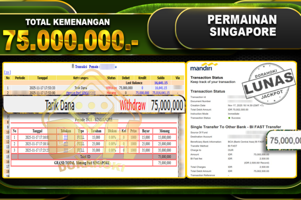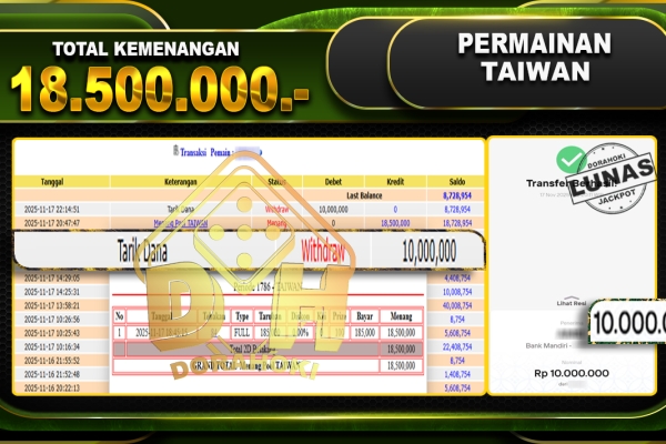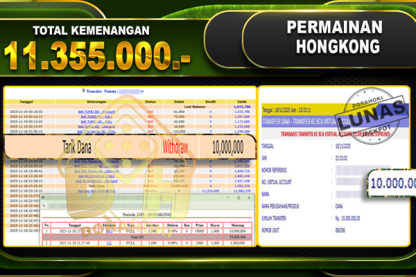 Bukti JP TOGEL HONGKONG – ucapkan selamat kepada user id pepxxxxx atas kemenangan di TOGEL HONGKONG dengan total kemenangan Rp.11,355,000,- . Yang pasti nya langsung LUNAS sesuai bukti ya bosku. Dorahoki nih bosku berapapun akan tetap kami bayar lunas ya bosku. Kami mengucapkan Terima Kasih telah mempercayakan DORAHOKI sebagai Bandar Online pilihan dalam bermain judi online….