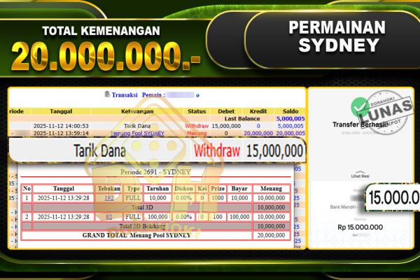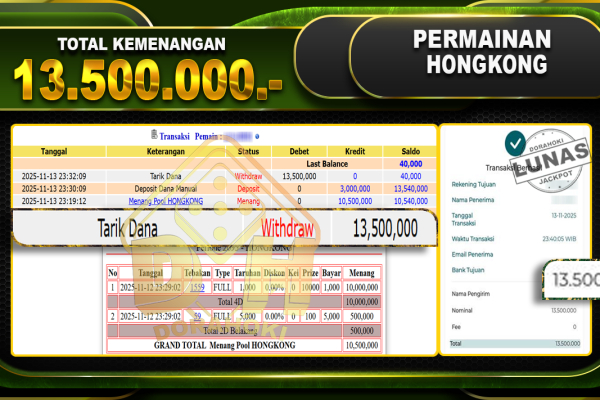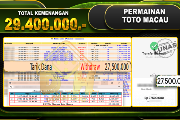 Bukti JP TOGEL TOTO MACAU 4D – ucapkan selamat kepada user id bosxxxxx atas kemenangan di TOGEL TOTO MACAU 4D dengan total kemenangan Rp.19,000,000,- Yang pasti nya langsung LUNAS sesuai bukti ya bosku. Dorahoki nih bosku berapapun akan tetap kami bayar lunas ya bosku