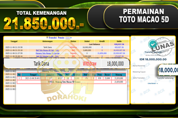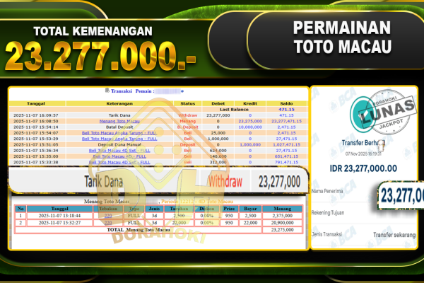 Bukti JP TOGEL TOTO MACAU 4D – ucapkan selamat kepada user id nayxxxxx atas kemenangan di TOGEL TOTO MACAU 4D dengan total kemenangan Rp.14,250,000,- Yang pasti nya langsung LUNAS sesuai bukti ya bosku. Dorahoki nih bosku berapapun akan tetap kami bayar lunas ya bosku