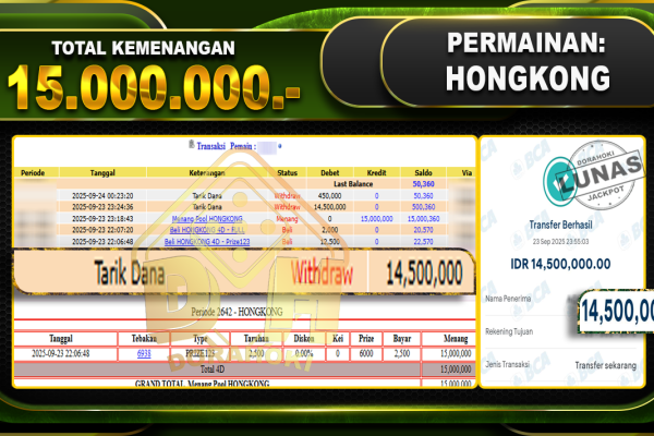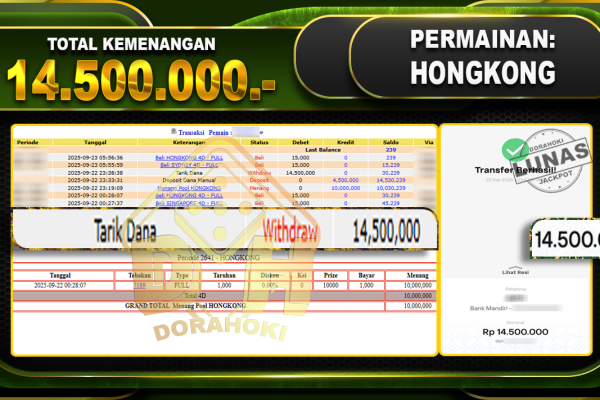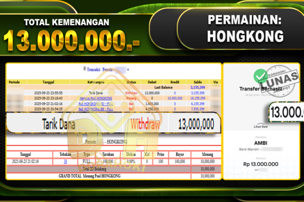 Bukti JP TOGEL HONGKONG – ucapkan selamat kepada user id gulxxxxx atas kemenangan di TOGEL HONGKONG dengan total kemenangan Rp.13,000,000,- . Yang pasti nya langsung LUNAS sesuai bukti ya bosku. Dorahoki nih bosku berapapun akan tetap kami bayar lunas ya bosku. Kami mengucapkan Terima Kasih telah mempercayakan DORAHOKI sebagai Bandar Online pilihan dalam bermain judi online….
