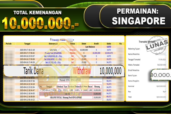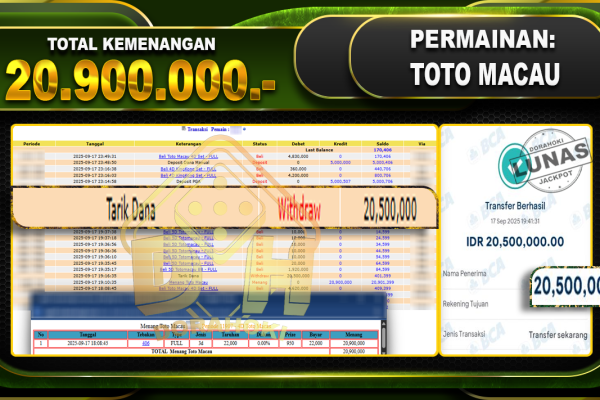 Bukti JP TOGEL TOTO MACAU – ucapkan selamat kepada user id mimxxxxx atas kemenangan di TOGEL TOTO MACAU dengan total kemenangan Rp.18,000,000,- Yang pasti nya langsung LUNAS sesuai bukti ya bosku. Dorahoki nih bosku berapapun akan tetap kami bayar lunas ya bosku