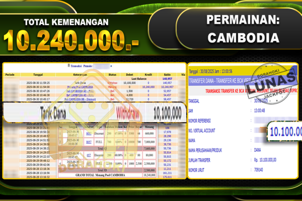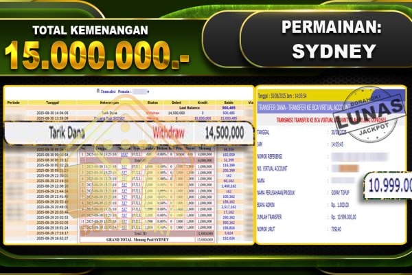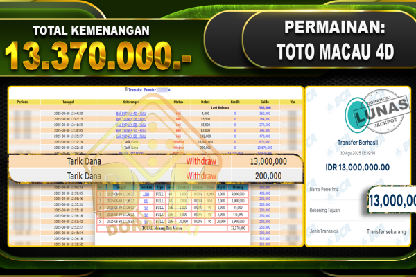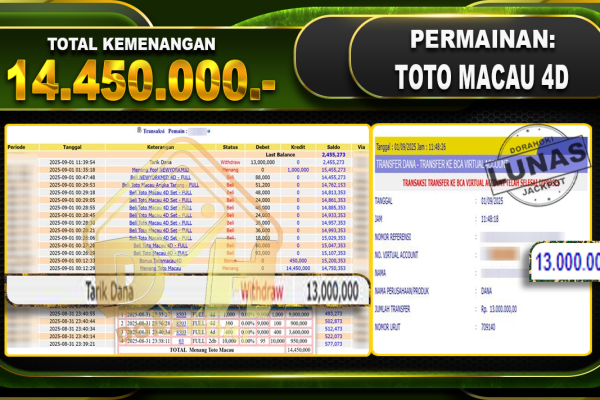 Bukti JP TOGEL TOTO MACAU 4D – ucapkan selamat kepada user id Gokxxxx atas kemenangan di TOGEL TOTO MACAU 4D dengan total kemenangan Rp.14,450,000,- Yang pasti nya langsung LUNAS sesuai bukti ya bosku. Dorahoki nih bosku berapapun akan tetap kami bayar lunas ya bosku