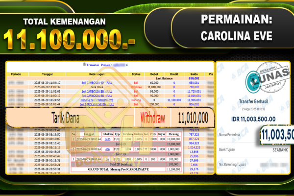 Bukti JP TOGEL OREGON12 – ucapkan selamat kepada user id Sebxxx atas kemenangan di TOGEL OREGON12 dengan total kemenangan Rp.12,500,000,- . Yang pasti nya langsung LUNAS sesuai bukti ya bosku. Dorahoki nih bosku berapapun akan tetap kami bayar lunas ya bosku. Kami mengucapkan Terima Kasih telah mempercayakan DORAHOKI sebagai Bandar Online pilihan dalam bermain judi…