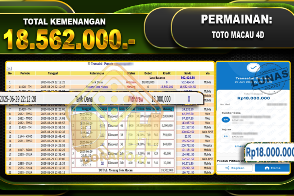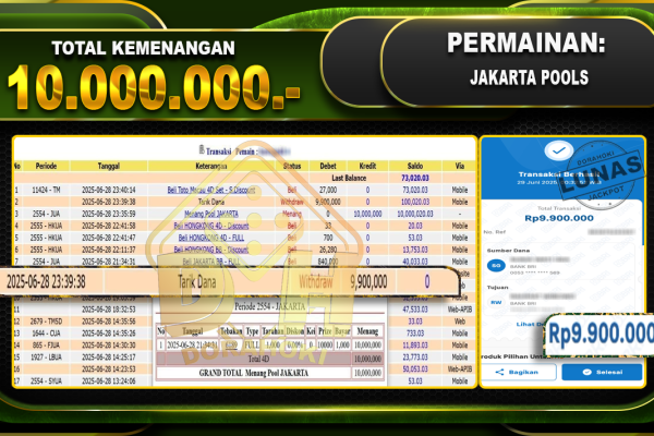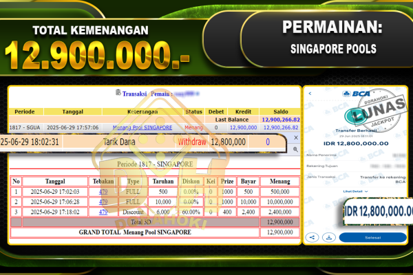 Bukti JP SINGAPORE POOLS – ucapkan selamat kepada user id VOXxxx atas kemenangan di SINGAPORE POOLS dengan total kemenangan Rp.12.900.000,- . Yang pasti nya langsung LUNAS sesuai bukti ya bosku. Dorahoki nih bosku berapapun akan tetap kami bayar lunas ya bosku.