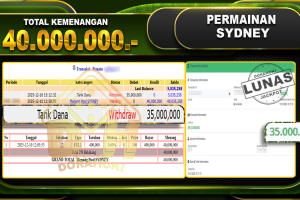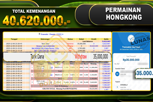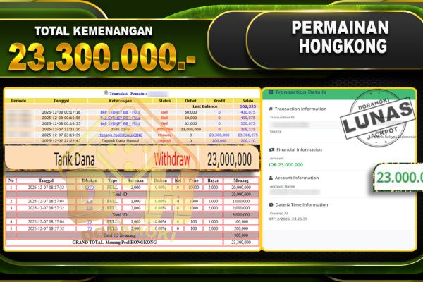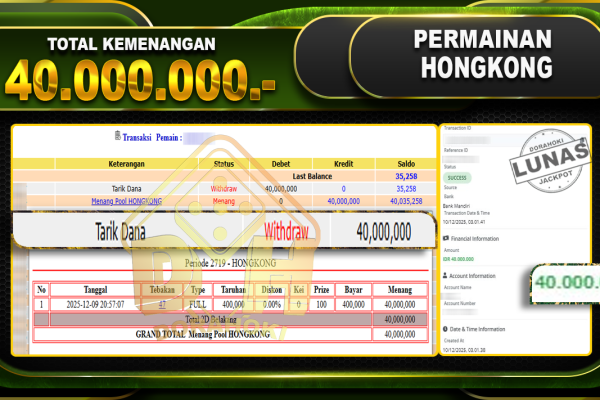 Bukti JP TOGEL HONGKONG – ucapkan selamat kepada user id gulxxxxx atas kemenangan di TOGEL HONGKONG dengan total kemenangan Rp.40,000,000,- . Yang pasti nya langsung LUNAS sesuai bukti ya bosku. Dorahoki nih bosku berapapun akan tetap kami bayar lunas ya bosku. Kami mengucapkan Terima Kasih telah mempercayakan DORAHOKI sebagai Bandar Online pilihan dalam bermain judi online….