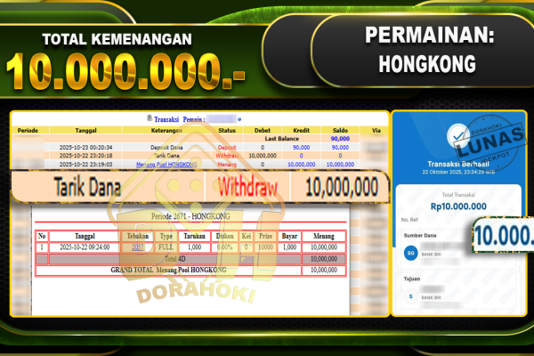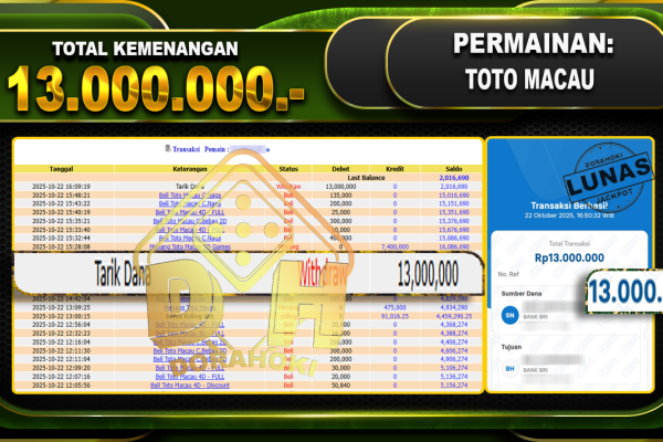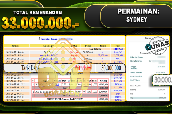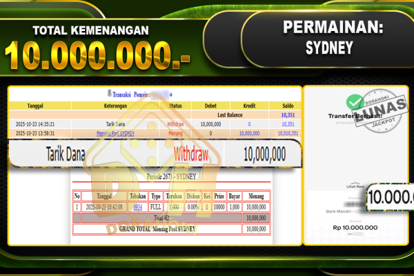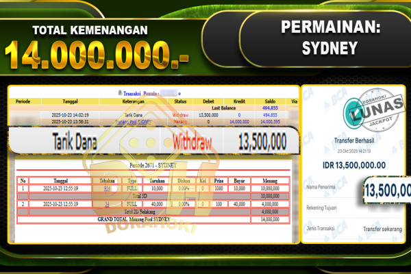 Bukti JP TOGEL SYDNEY – ucapkan selamat kepada user id kacxxxx atas kemenangan di TOGEL SYDNEY dengan total kemenangan Rp.14,000,000,- Yang pasti nya langsung LUNAS sesuai bukti ya bosku. Dorahoki nih bosku berapapun akan tetap kami bayar lunas ya bosku