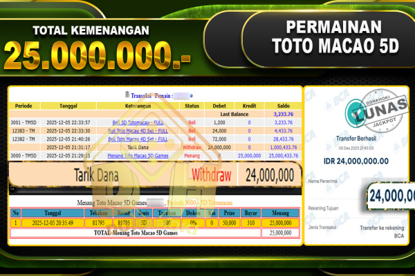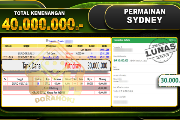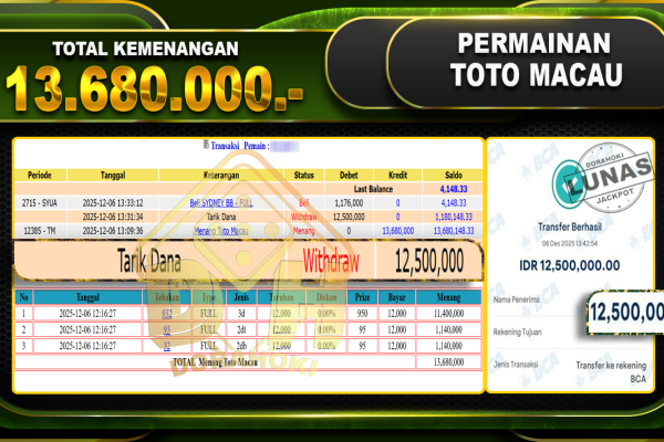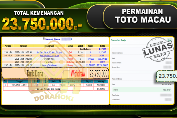 Bukti JP TOGEL HONGKONG – ucapkan selamat kepada user id hisxxxxx atas kemenangan di TOGEL HONGKONG dengan total kemenangan Rp.12,100,000,- . Yang pasti nya langsung LUNAS sesuai bukti ya bosku. Dorahoki nih bosku berapapun akan tetap kami bayar lunas ya bosku. Kami mengucapkan Terima Kasih telah mempercayakan DORAHOKI sebagai Bandar Online pilihan dalam bermain judi online….