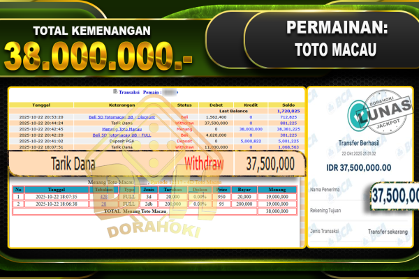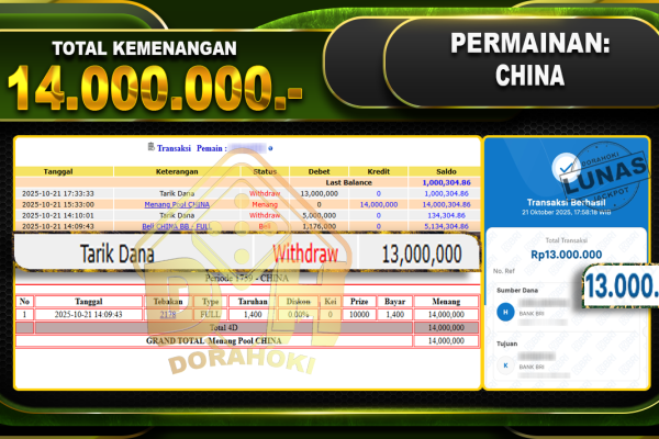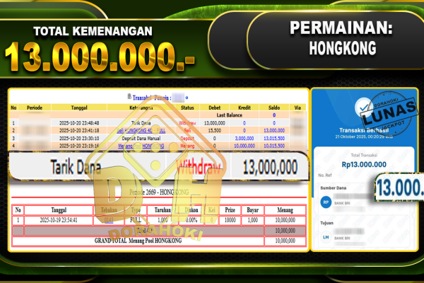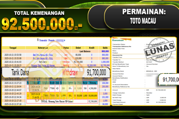 Bukti JP TOGEL SYDNEY – ucapkan selamat kepada user id phlxxx atas kemenangan di TOGEL SYDNEY dengan total kemenangan Rp.14,210,000,- Yang pasti nya langsung LUNAS sesuai bukti ya bosku. Dorahoki nih bosku berapapun akan tetap kami bayar lunas ya bosku