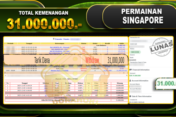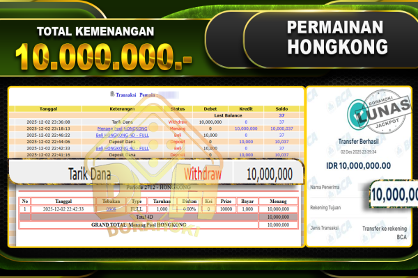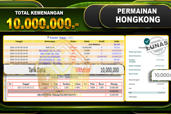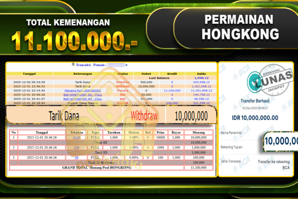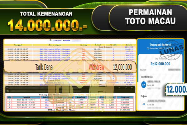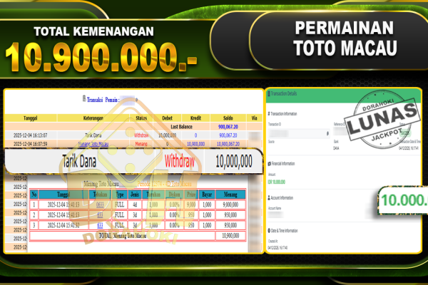 Bukti JP TOGEL TOTO MACAU 4D – ucapkan selamat kepada user id romxxxx atas kemenangan di TOGEL TOTO MACAU 4D dengan total kemenangan Rp.10,900,000,- Yang pasti nya langsung LUNAS sesuai bukti ya bosku. Dorahoki nih bosku berapapun akan tetap kami bayar lunas ya bosku