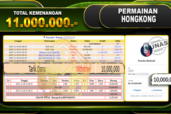 Bukti JP TOGEL HONGKONG – ucapkan selamat kepada user id getxxxxx atas kemenangan di TOGEL HONGKONG dengan total kemenangan Rp.11,000,000,- . Yang pasti nya langsung LUNAS sesuai bukti ya bosku. Dorahoki nih bosku berapapun akan tetap kami bayar lunas ya bosku. Kami mengucapkan Terima Kasih telah mempercayakan DORAHOKI sebagai Bandar Online pilihan dalam bermain judi online….