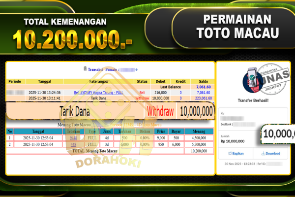 TOGEL TOTO MACAU 4D – DORAHOKI 30 NOVEMBER 2025