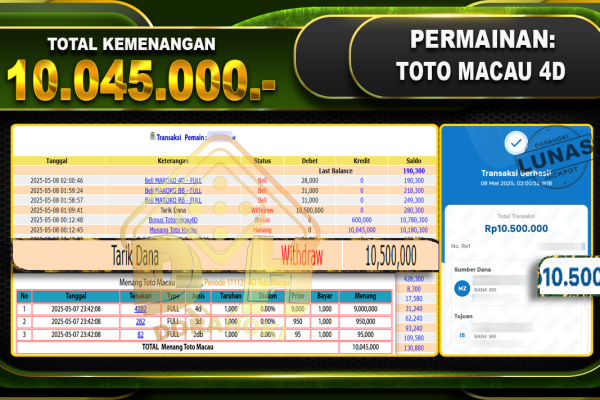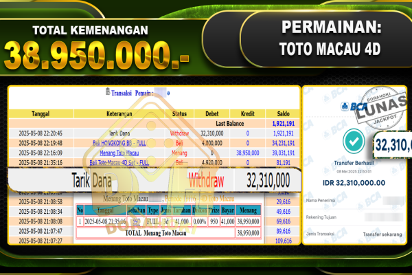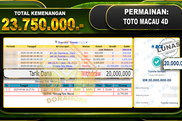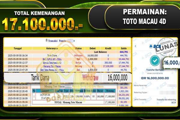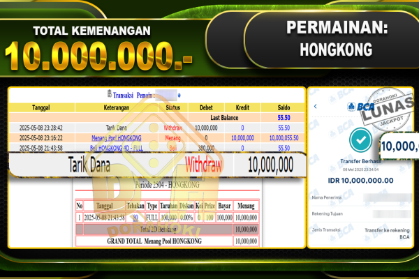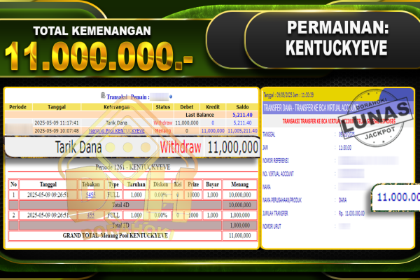 Bukti JP TOGEL KENTUCKY EVE – ucapkan selamat kepada user id Asbxxx atas kemenangan di TOGEL KENTUCKY EVE dengan total kemenangan Rp.11.000.000,- . Yang pasti nya langsung LUNAS sesuai bukti ya bosku. Dorahoki nih bosku berapapun akan tetap kami bayar lunas ya bosku. Kami mengucapkan Terima Kasih telah mempercayakan DORAHOKI sebagai Bandar Online pilihan dalam bermain…